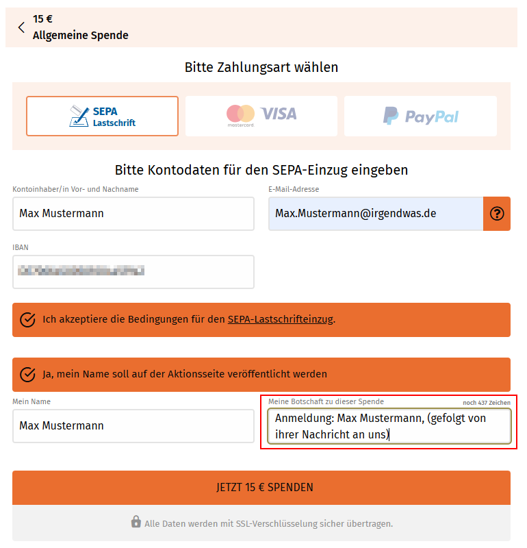 Sonstige Spenden 💶: "Spende: Nachricht"